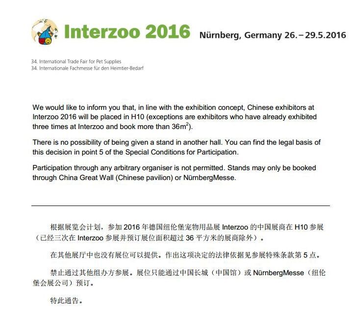關于中國企業參加16年德國寵物展interzoo的公告